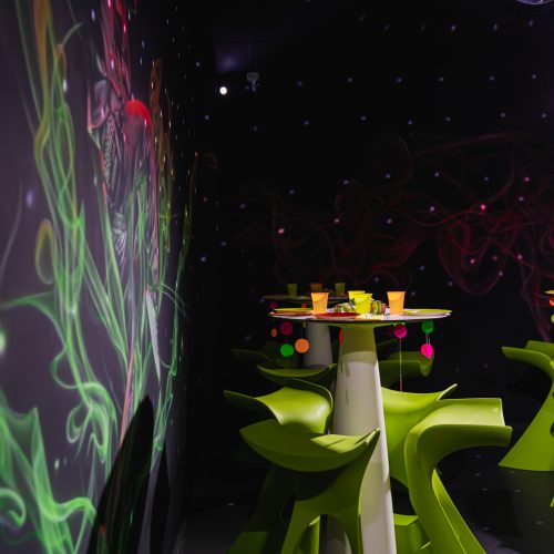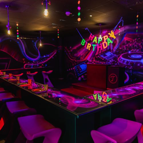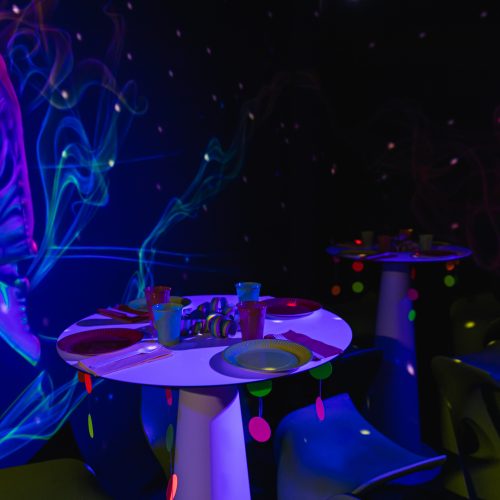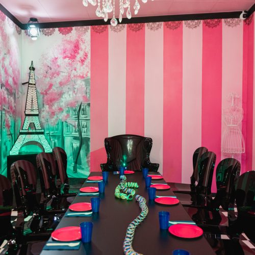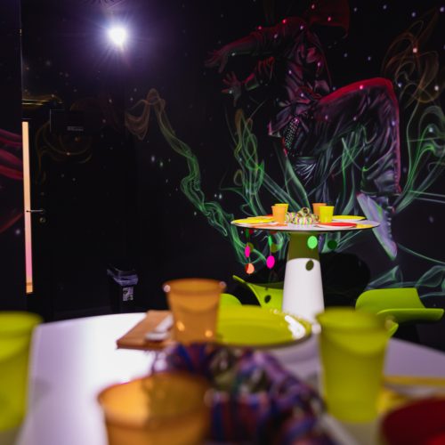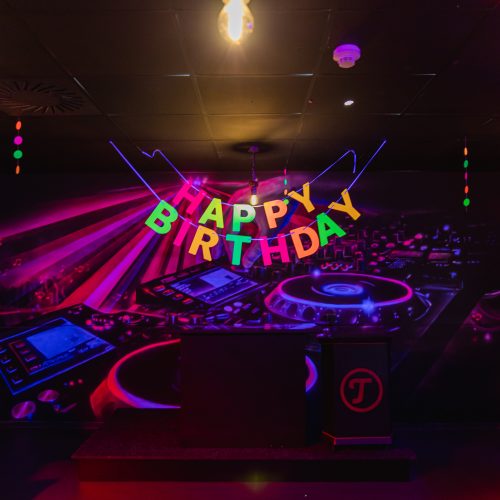 Party in der Disco! Neonfarben und Schwarzlicht sorgen für eine unvergessliche Feier. Platz für bis zu 24 Kinder.