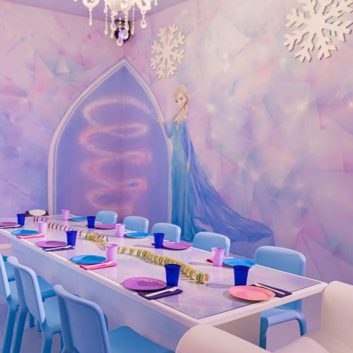 Tritt ein in den Eispalast von Elsa und genieße eine magische Geburtstagsfeier. Platz für bis zu 12 Kinder.