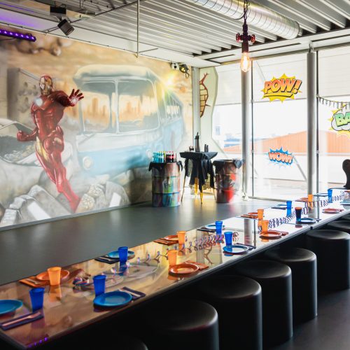 Tauche ein in die Welt der Superhelden und feiere deinen Geburtstag mit Batman, Spiderman und Hulk. Perfekt für bis zu 24 Kinder.
