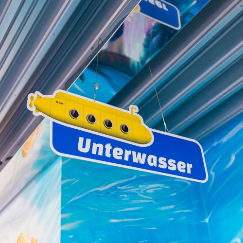 Entdecke die Unterwasserwelt mit Haien, Rochen und Nemo. Platz für bis zu 24 Kinder.